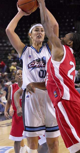 Ruth Riley with a shot attempt while being guarded by LaTonya Johnson.
